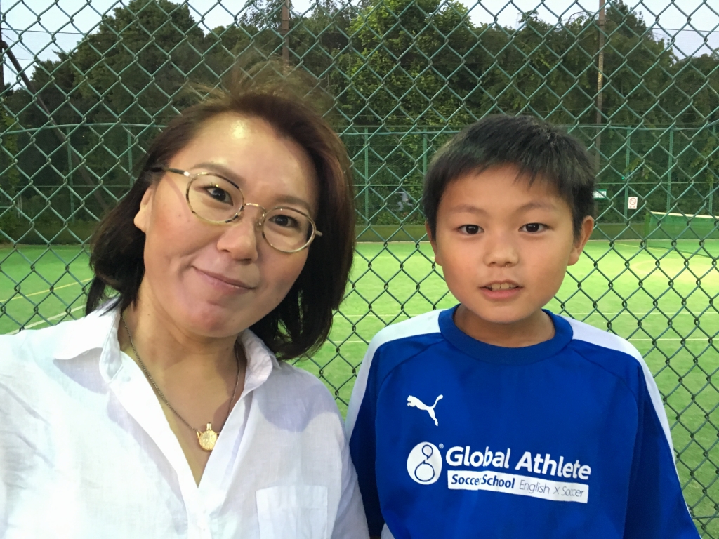 親としてはずっと英会話を習わせたいと思っていたのですが、普通の英会話スクールには行きたがらず困っていたので、最初はすごく良いところを見つけられて良かったといった感じでした。だから息子は英語を意識せず、普通のサッカースクールに通う感覚だったと思います。